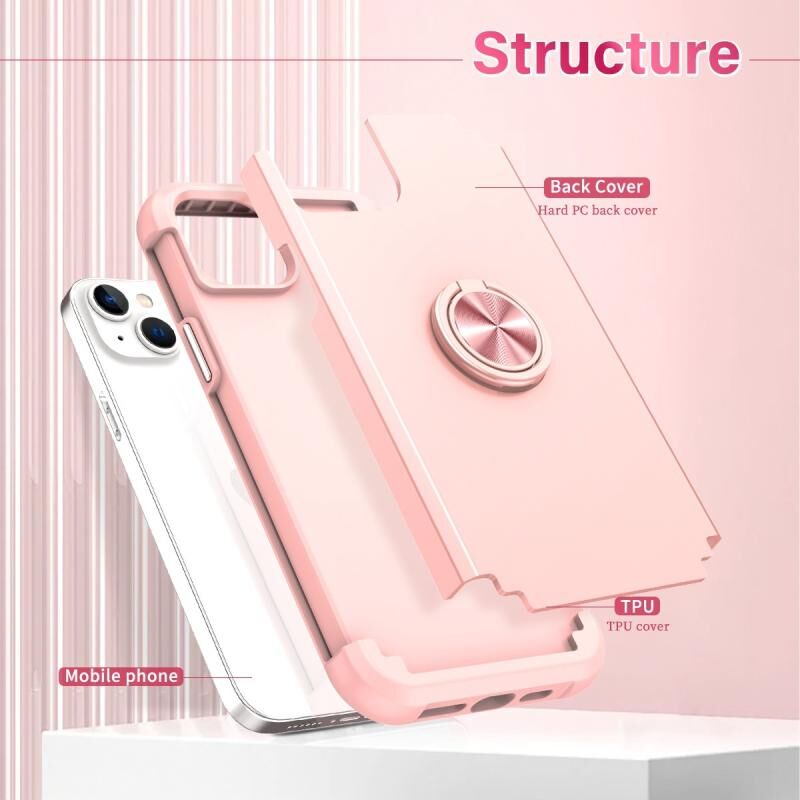 Θήκη τηλεφώνου με περιστρεφόμενη βάση δακτυλιδιού και μαγνητική υποστήριξη για iPhone 15 L2 (Μαύρο)