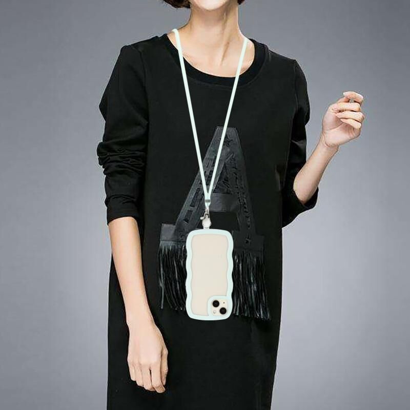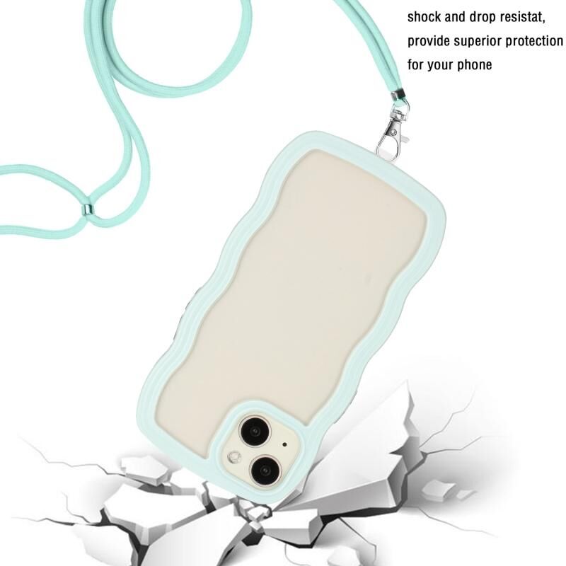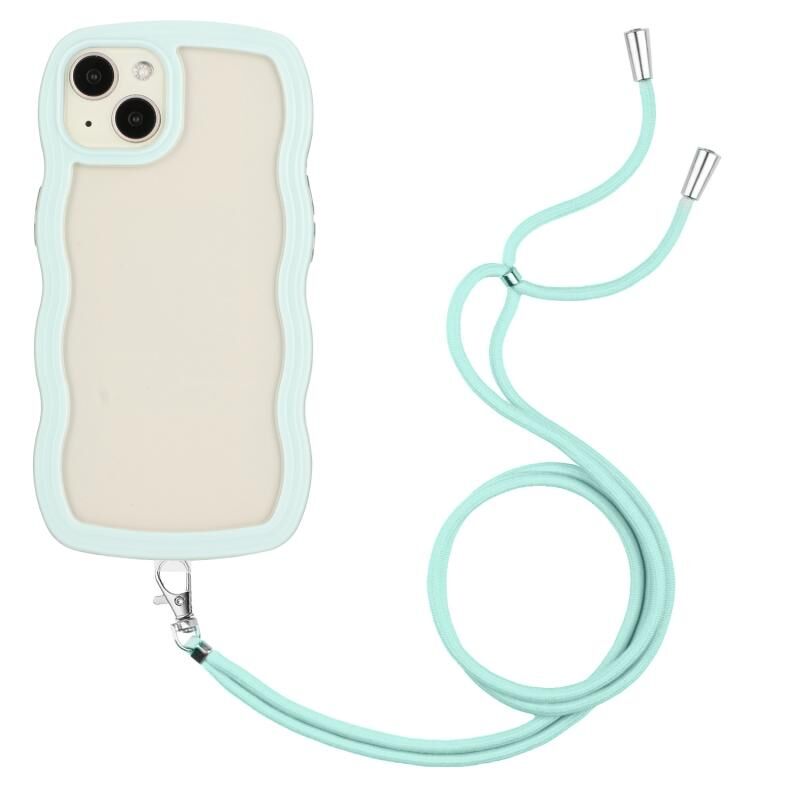 Θήκη τηλεφώνου για iPhone 15, κορδόνι, διαφανές PC TPU σε χρώμα καραμέλας με κυματιστό σχέδιο (πράσινο)