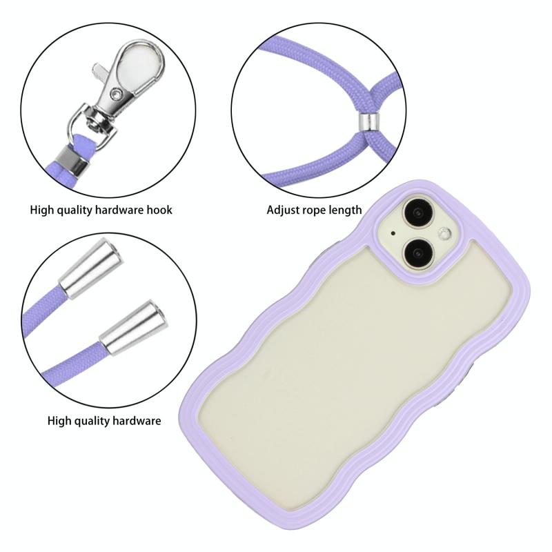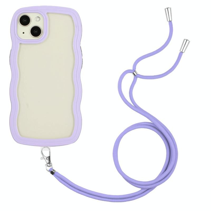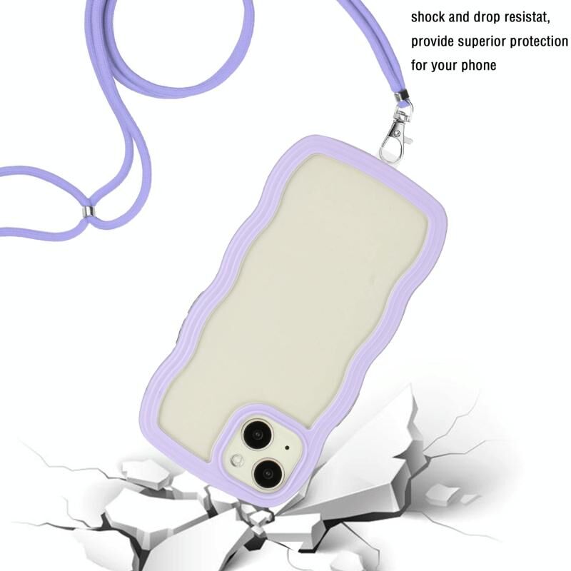 Θήκη τηλεφώνου για iPhone 15, κορδόνι, διαφανές PC TPU σε χρώμα καραμέλας με κυματιστό σχέδιο (Μωβ)