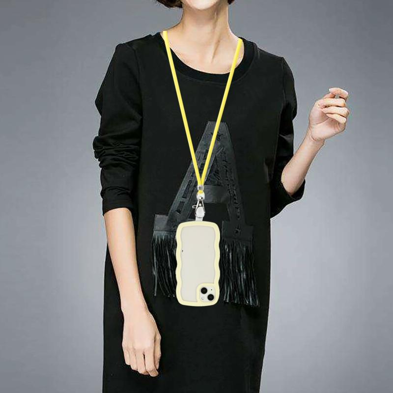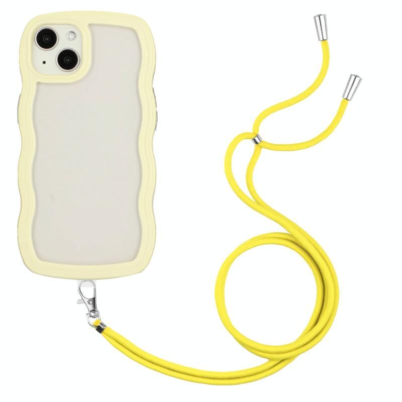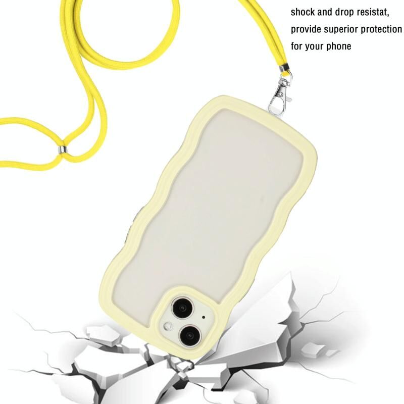 Θήκη τηλεφώνου για iPhone 15, κορδόνι, διαφανές PC TPU σε χρώμα καραμέλας με κυματιστό σχέδιο (Κίτρινο)