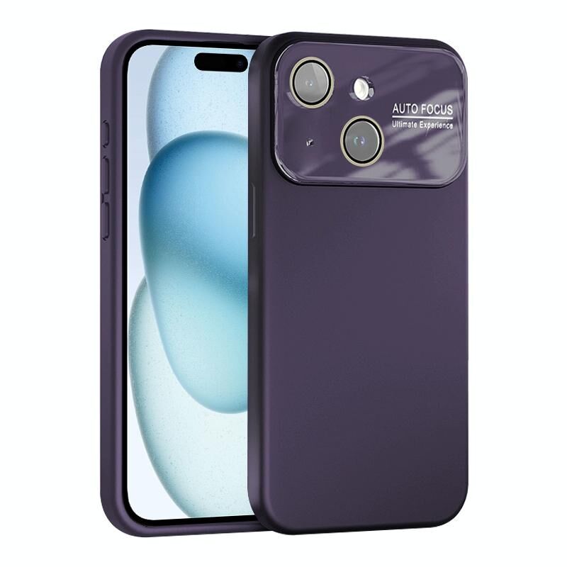 For iPhone 15 Large Window Acrylic Lens Film + Liquid Silicone Full Coverage Phone Case(Dark Purple)