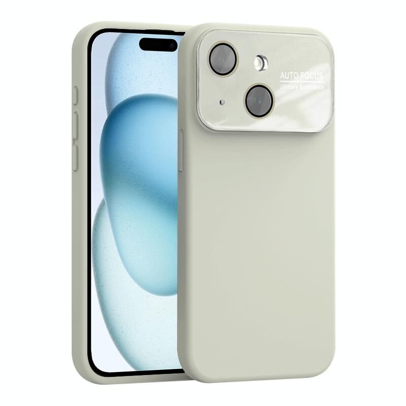 For iPhone 15 Large Window Acrylic Lens Film + Liquid Silicone Full Coverage Phone Case(White)