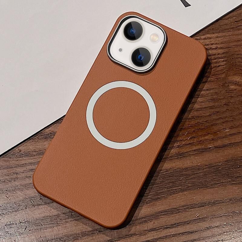 For iPhone 15 Leather Texture Design MagSafe Full Coverage Phone Case(Brown)