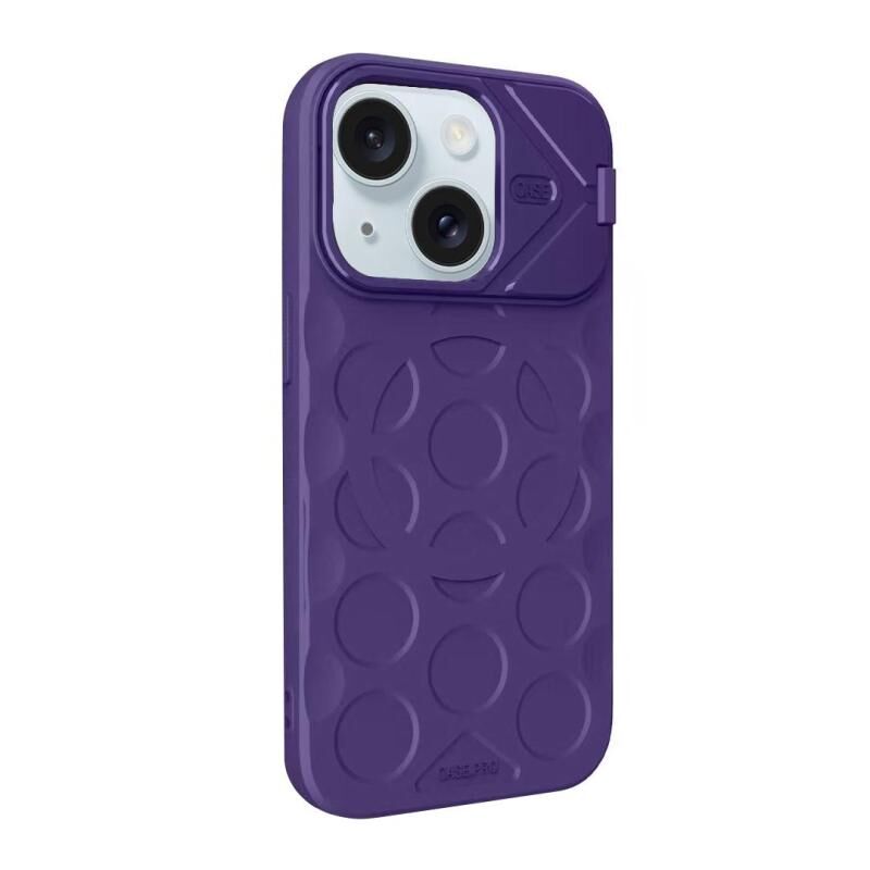 For iPhone 15 Lens Frame Holder MagSafe PC Hybrid TPU Phone Case(Purple)