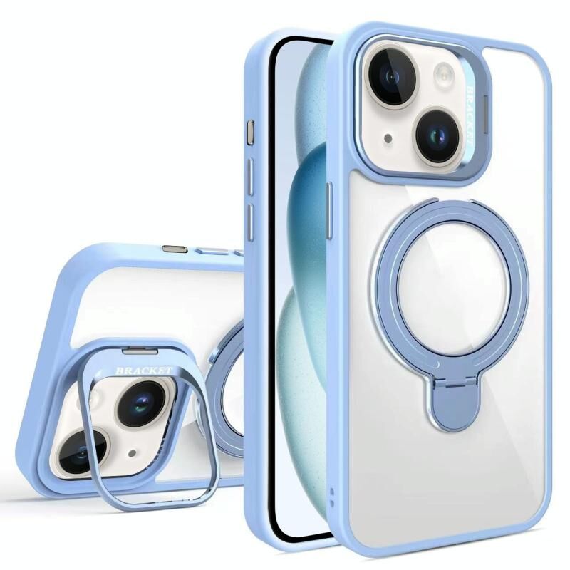 For iPhone 15 Lens Protection & Ring Bracket MagSafe Phone Case(Sierra Blue)