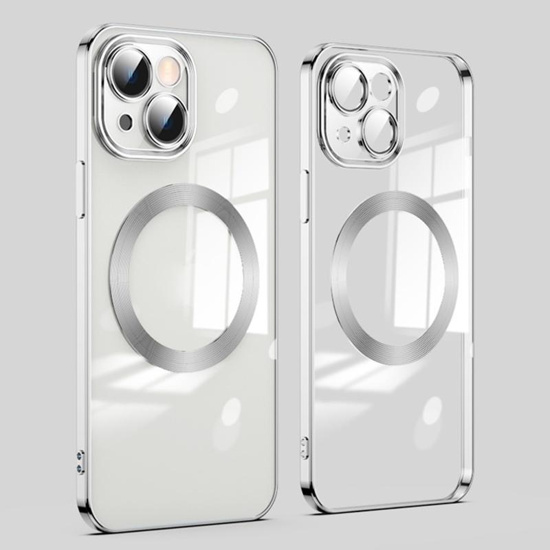 For iPhone 15 Lens Protector MagSafe Electroplated Phone Case(Silver)