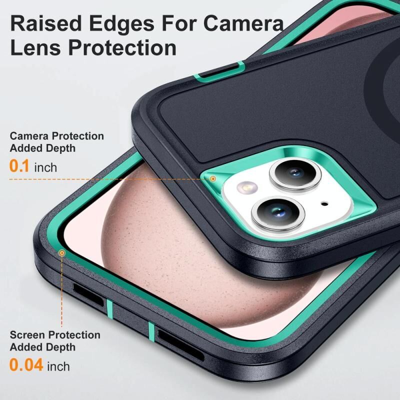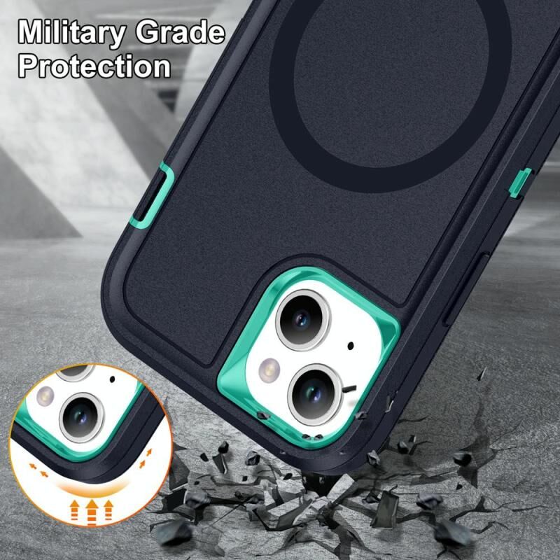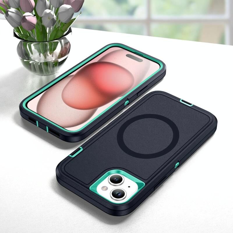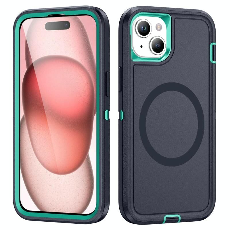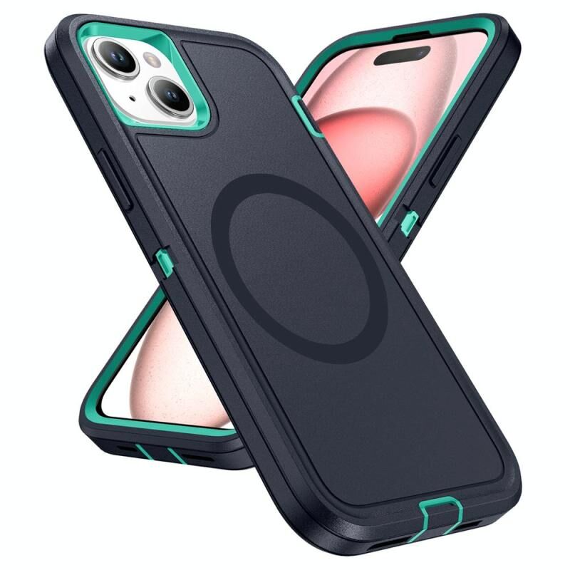 Θήκη τηλεφώνου για iPhone 15, αδιάβροχη, ανθεκτική, με μαγνητική σύνδεση MagSafe (Σκούρο μπλε + Ανοιχτό μπλε)
