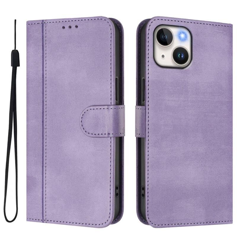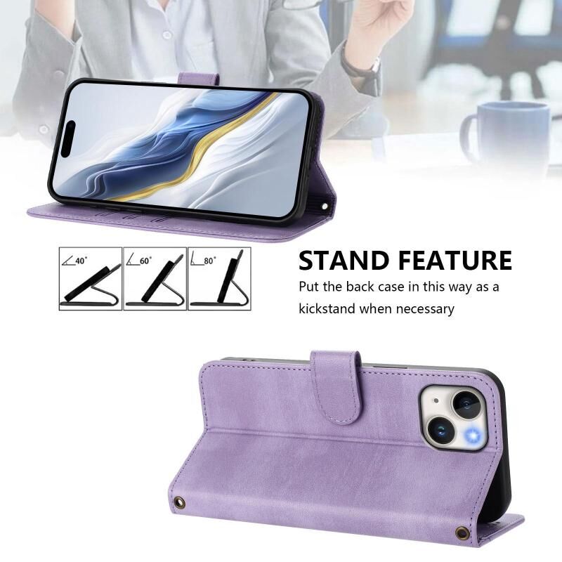 Θήκη τηλεφώνου από δέρμα retro με αγκράφα σύνδεσης για iPhone 15 (Μωβ)