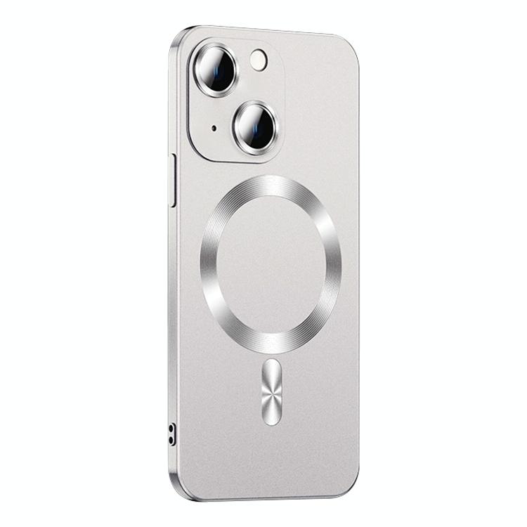 For iPhone 15 Liquid Lens Protector Magsafe Phone Case(Silver)