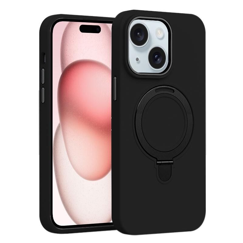 Θήκη τηλεφώνου για iPhone 15, Υγρή Σιλικόνη με Μαγνητικό Δακτύλιο MagSafe (Μαύρο)