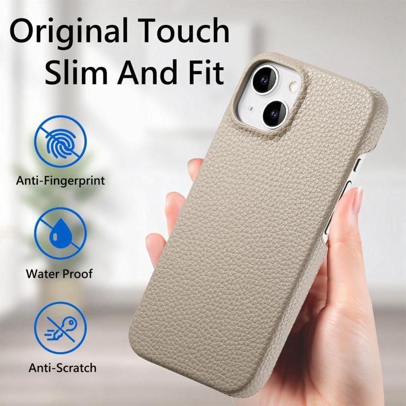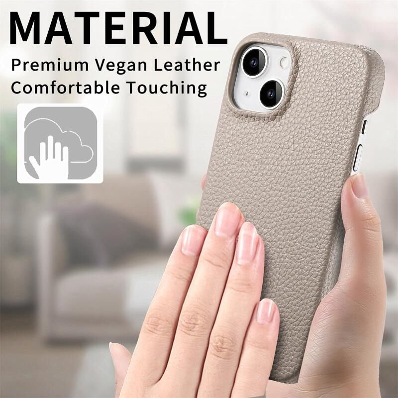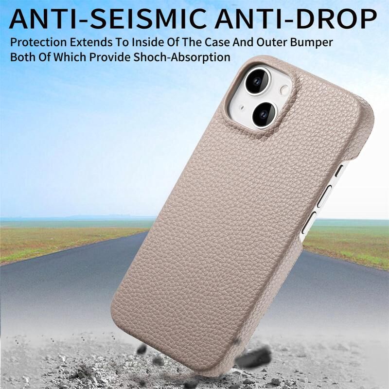 Θήκη τηλεφώνου για iPhone 15 από δέρμα με λάδι Litchi (Χακί)