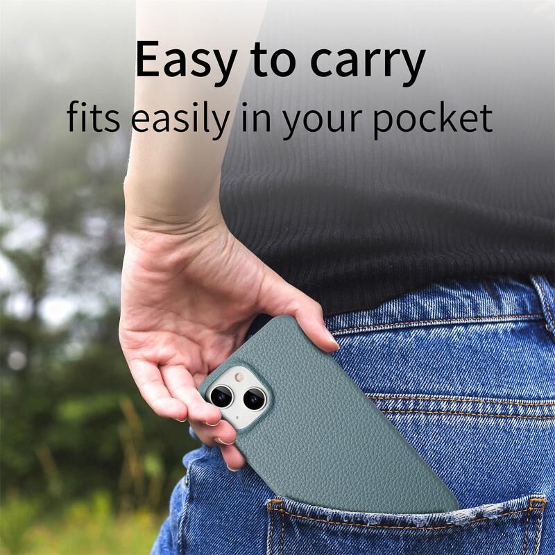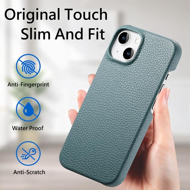 Θήκη τηλεφώνου για iPhone 15 από δέρμα με λάδι Litchi (Καφέ)