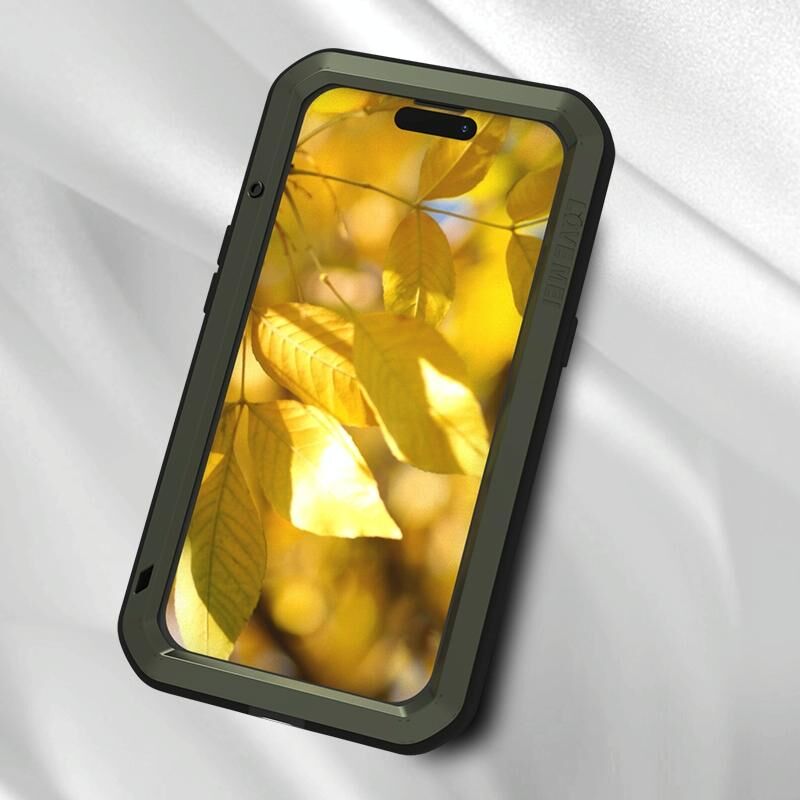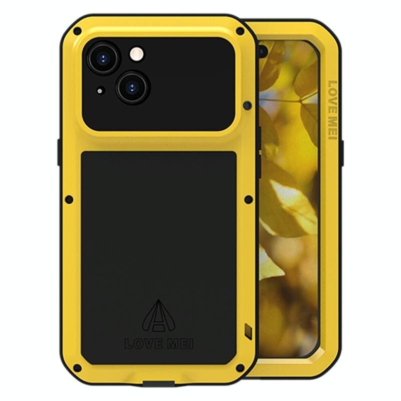 Θήκη κινητού LOVE MEI για iPhone 15, μεταλλική, ανθεκτική σε κρούσεις, αδιάβροχη, αδιάβροχη στη σκόνη (Ασημί) (Κίτρινο)
