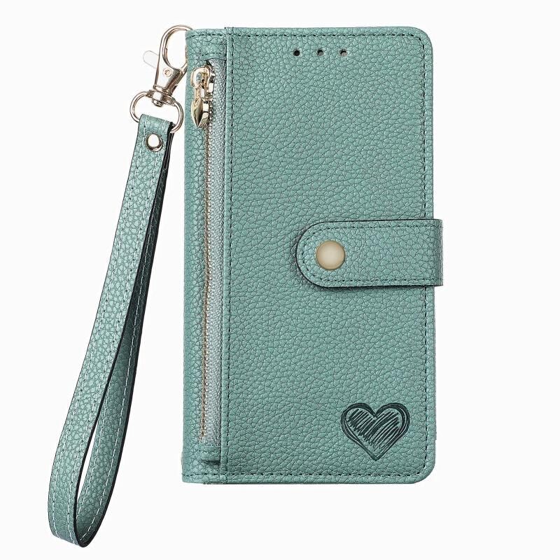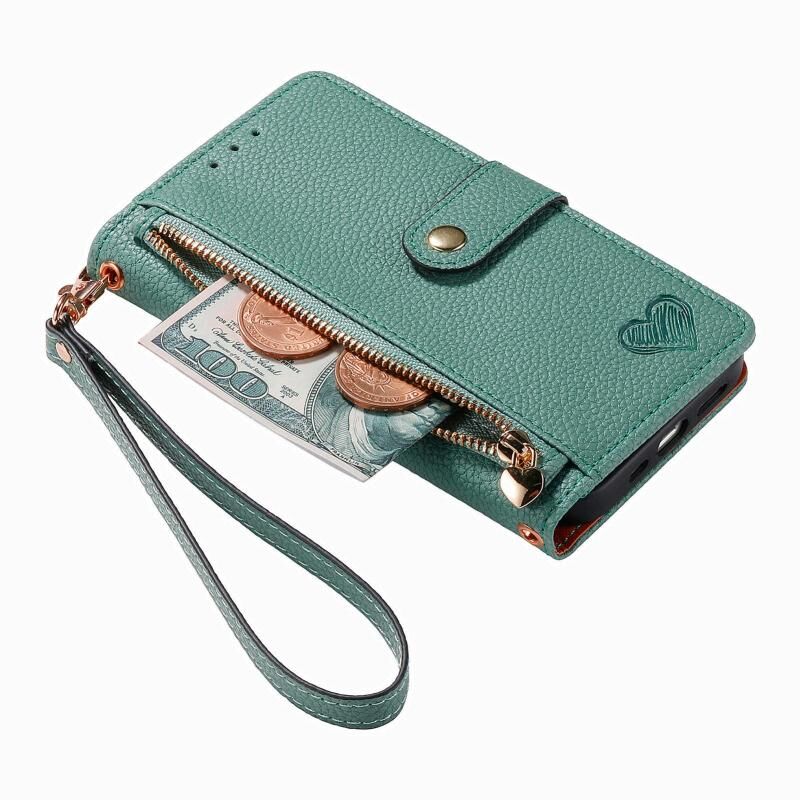 Θήκη τηλεφώνου δερμάτινη με λουρί και φερμουάρ για iPhone 15 (πράσινο)