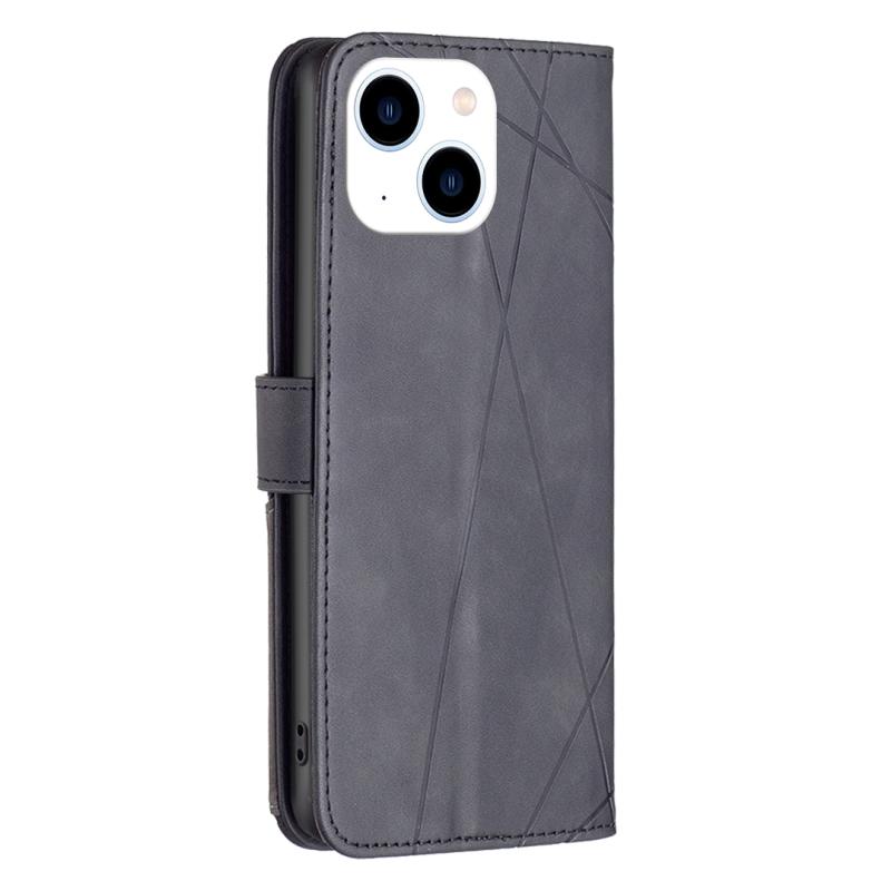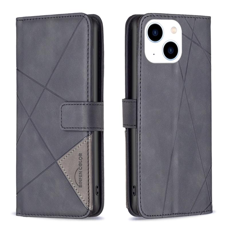 For iPhone 15 Magnetic Buckle Rhombus Texture Leather Phone Case(Black)