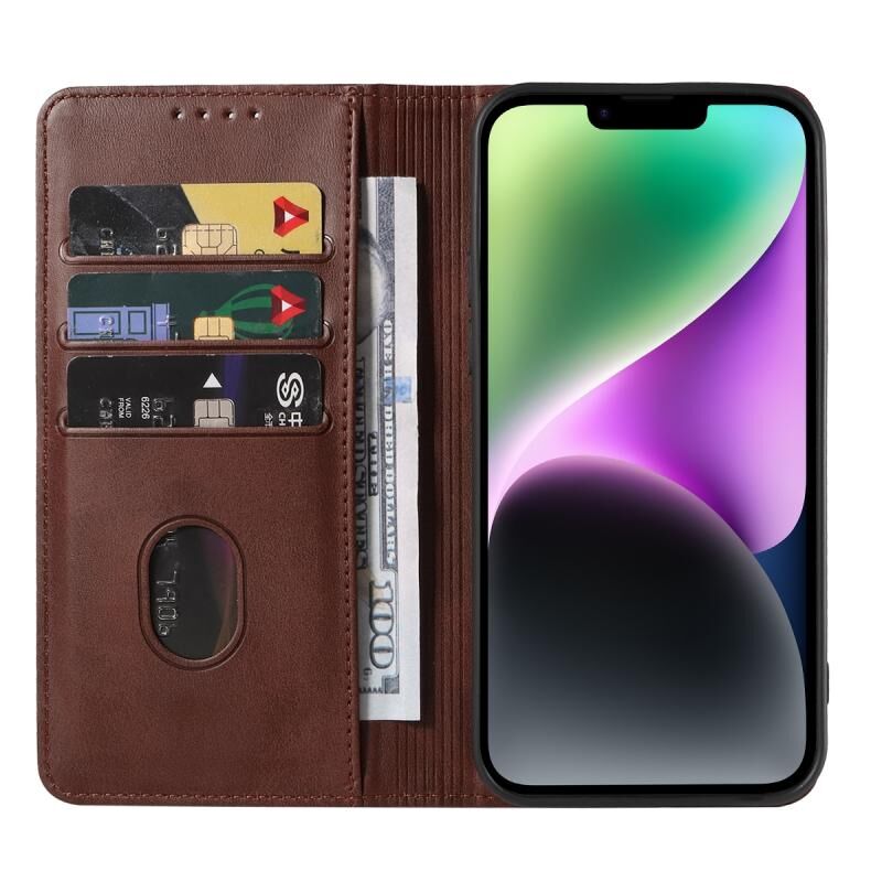 For iPhone 15 Magnetic Closure Leather Phone Case(Brown)
