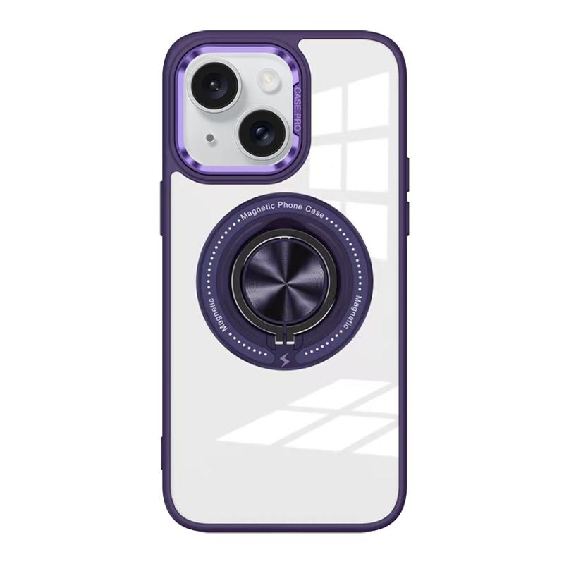 For iPhone 15 Magnetic Rotating Ring Holder Acrylic Phone Case(Dark Purple)