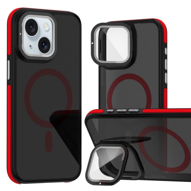 Θήκη τηλεφώνου για iPhone 15 Magsafe, Διχρωμία, Αίσθηση Δέρματος, με Προστατευτική Μεμβράνη Φακού και Στήριξη Φακού (Μπλε)