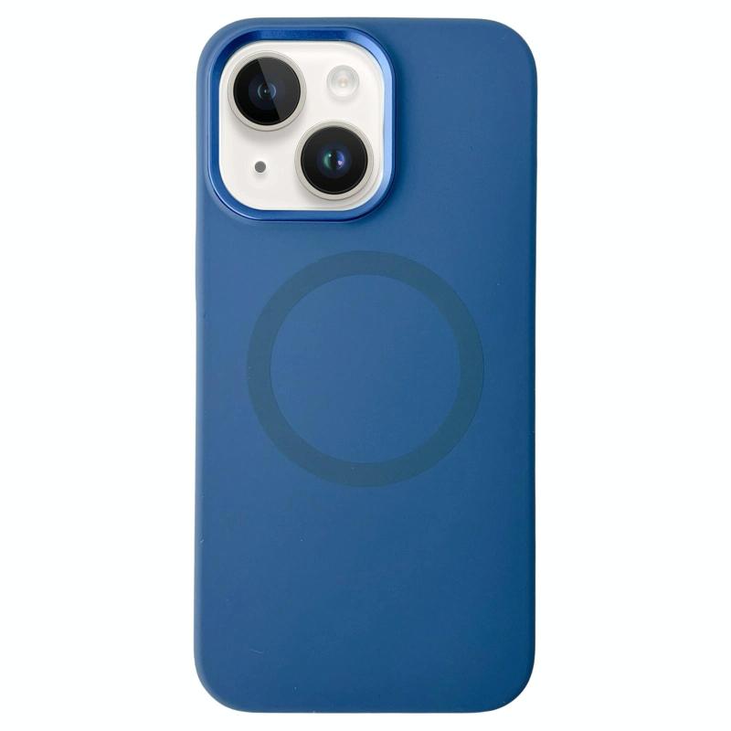 For iPhone 15 Metal Frame Liquid Silicone MagSafe Phone Case(Navy Blue)