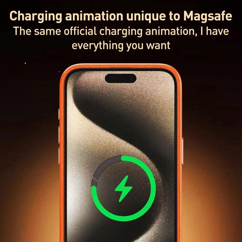 Θήκη κινητού τηλεφώνου για iPhone 15 με μεταλλικό πλαίσιο φακού, δερμάτινη πλήρης κάλυψη, αντικραδασμική (Πορτοκαλί)