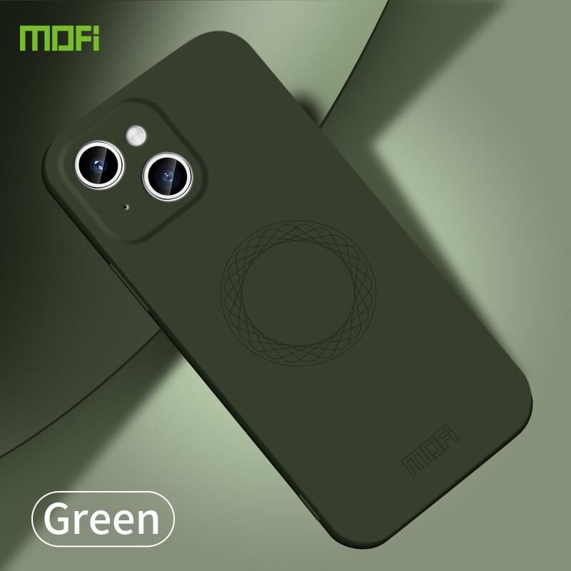 Θήκη σιλικόνης για iPhone 15 MOFI Qin Series Magsafe με αίσθηση δέρματος, πλήρως προστατευτική (Μπλε) (πράσινο)