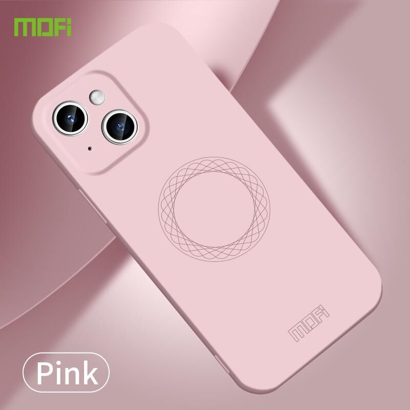Θήκη σιλικόνης για iPhone 15 MOFI Qin Series Magsafe με αίσθηση δέρματος, πλήρως προστατευτική (Μπλε) (ρόζ)