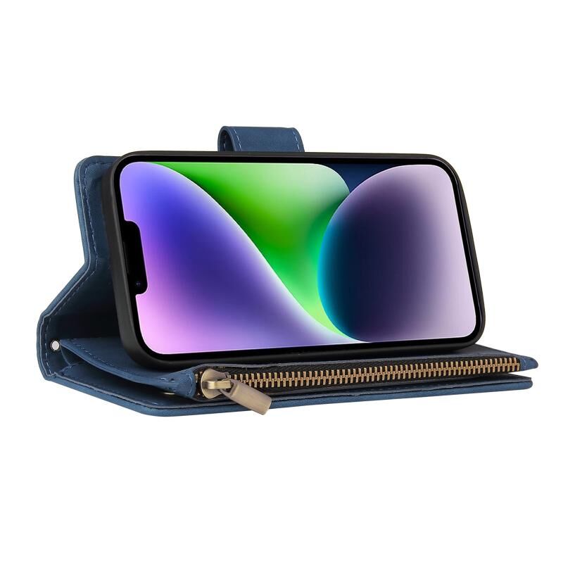 Θήκη τηλεφώνου από δέρμα, πολυλειτουργική πορτοφολάκι με πολλές θέσεις για κάρτες για iPhone 15 (Μπλε)