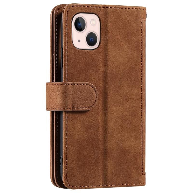 For iPhone 15 Nine Card Zipper Bag Leather Phone Case with Lanyard(Brown)