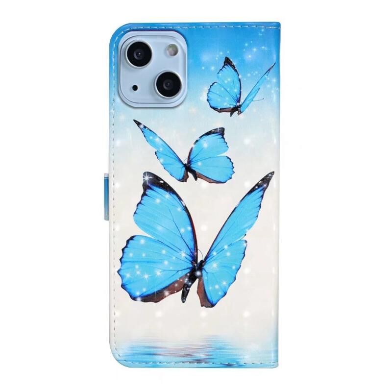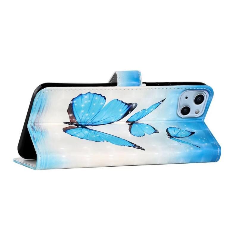 Θήκη τηλεφώνου δερμάτινη με ανάγλυφο σχέδιο λαδιού 3D για iPhone 15 (3 Πεταλούδες)
