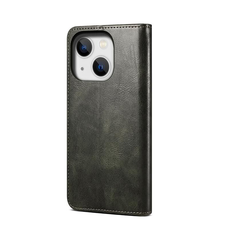 Θήκη τηλεφώνου για iPhone 15 από δέρμα με υφή λαδιού και κεριού Crazy Horse (πράσινο)