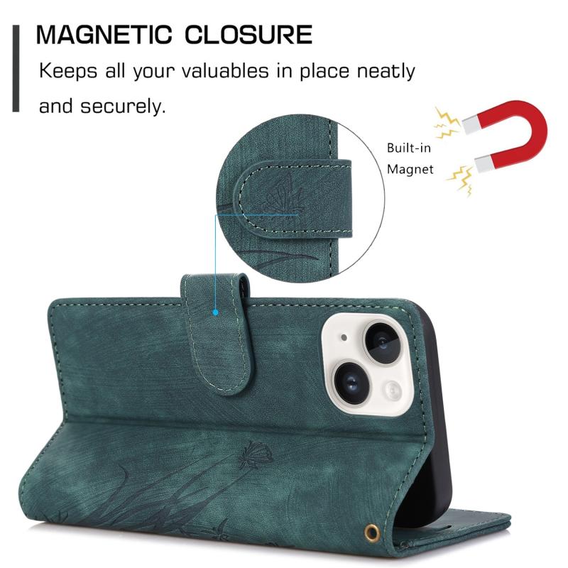 For iPhone 15 Orchid Butterfly Embossed Leather Phone Case(Green)