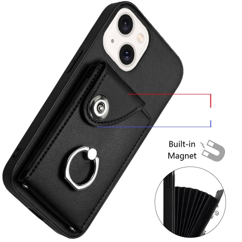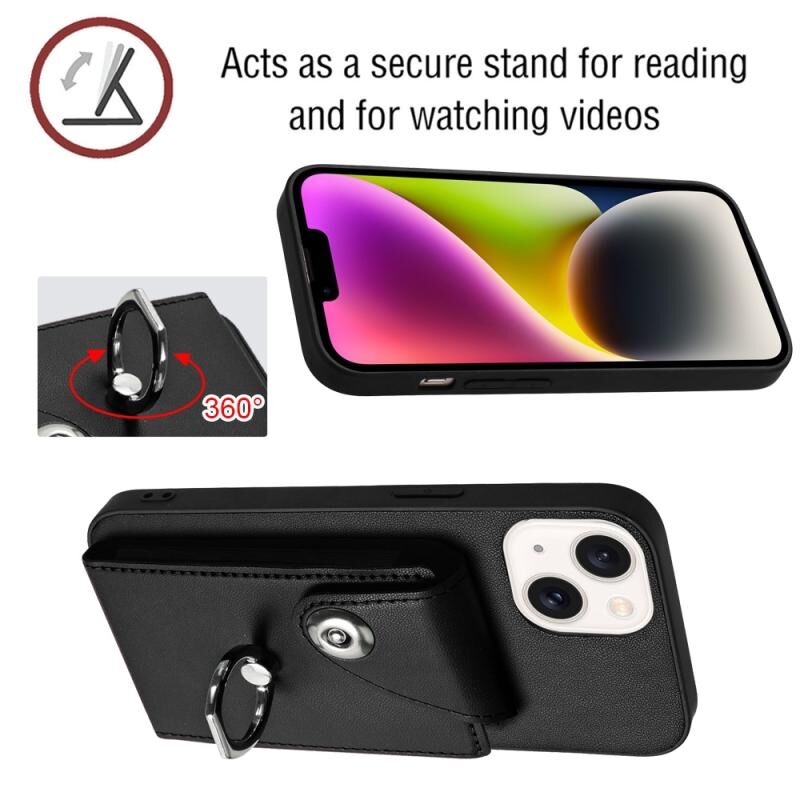 Θήκη τηλεφώνου για iPhone 15 με κάρτα οργάνωσης, δακτύλιο και λαβή (Μωβ)