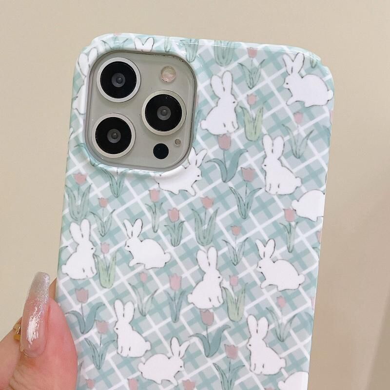 Θήκη τηλεφώνου για iPhone 15 από πολυανθρακικό με ζωγραφισμένο σχέδιο (Tulip Bunny)