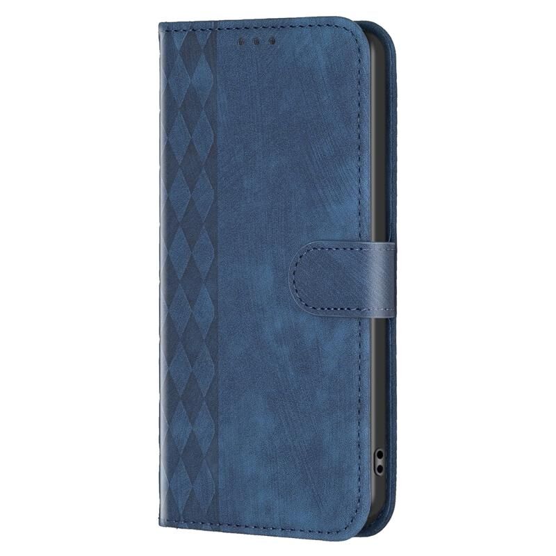 Θήκη τηλεφώνου για iPhone 15 με ανάγλυφο δέρμα καρό (Μπλε)