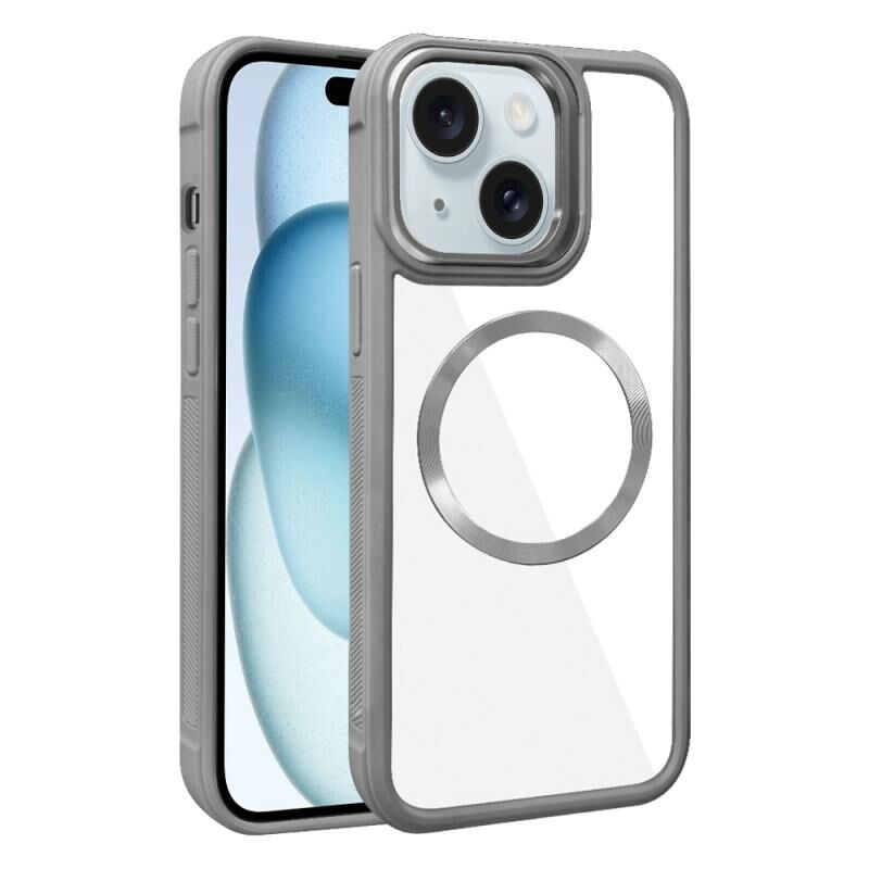 Θήκη τηλεφώνου υβριδική TPU ακρυλικού με υφή CD επιχρωμιωμένη για iPhone 15 (Γκρι)