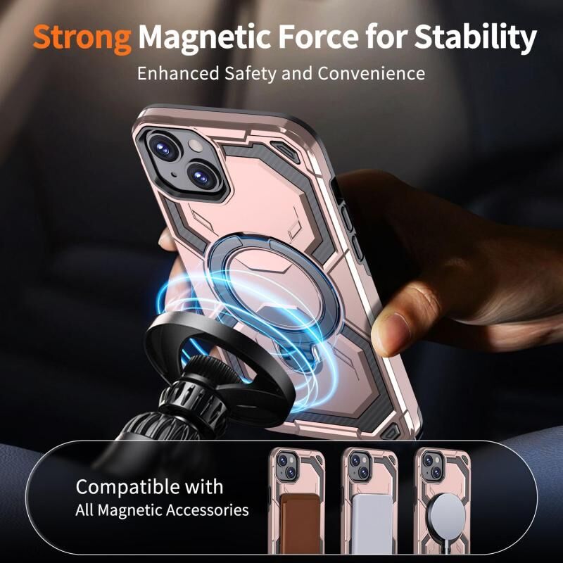For iPhone 15 Plus / 14 Plus Cooling MagSafe Holder Phone Case(Rose Gold)