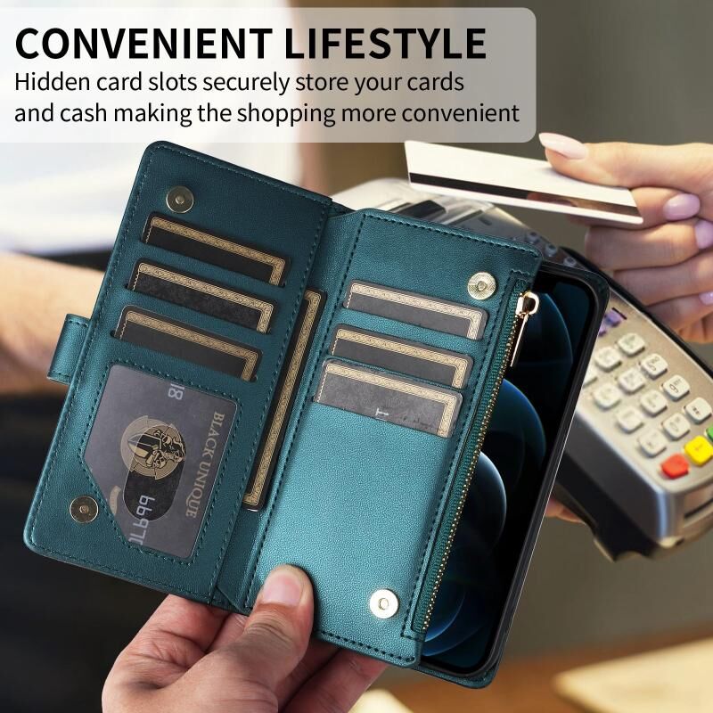4. Πορτοφόλι με Φερμουάρ: Υπερπολλαπλές υποδοχές καρτών μπορούν να χωρέσουν πολλές κάρτες. Το άνοιγμα και το κλείσιμο του διαμερίσματος με φερμουάρ προστατεύει τα χρήματά σας. Άνετο και πρακτικό για να βγαίνετε έξω με μια τσάντα κινητού!