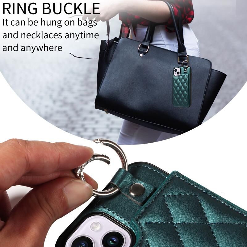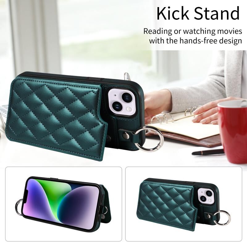 Θήκη τηλεφώνου με υφή ρόμβου και κοντό κορδόνι για iPhone 15 Plus / 14 Plus (πράσινο)