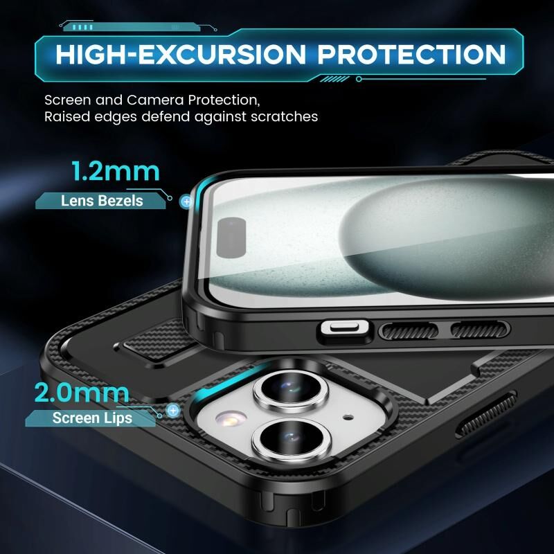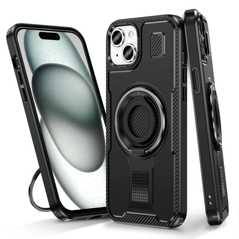 Θήκη τηλεφώνου για iPhone 15 Plus / 14 Plus με δακτύλιο, υβριδική από ανθρακονήματα PC και TPU (Μαύρο)