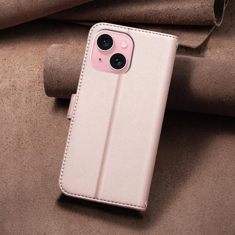 For iPhone 15 Plus / 14 Plus Square Texture Leather Phone Case(Rose Gold)