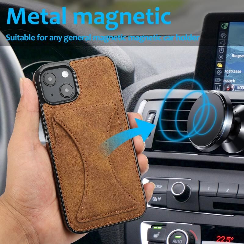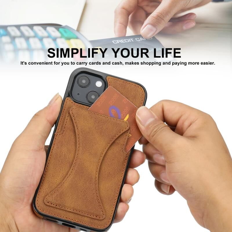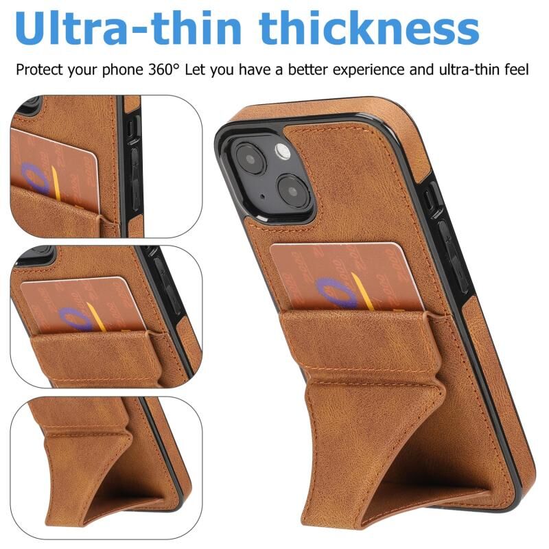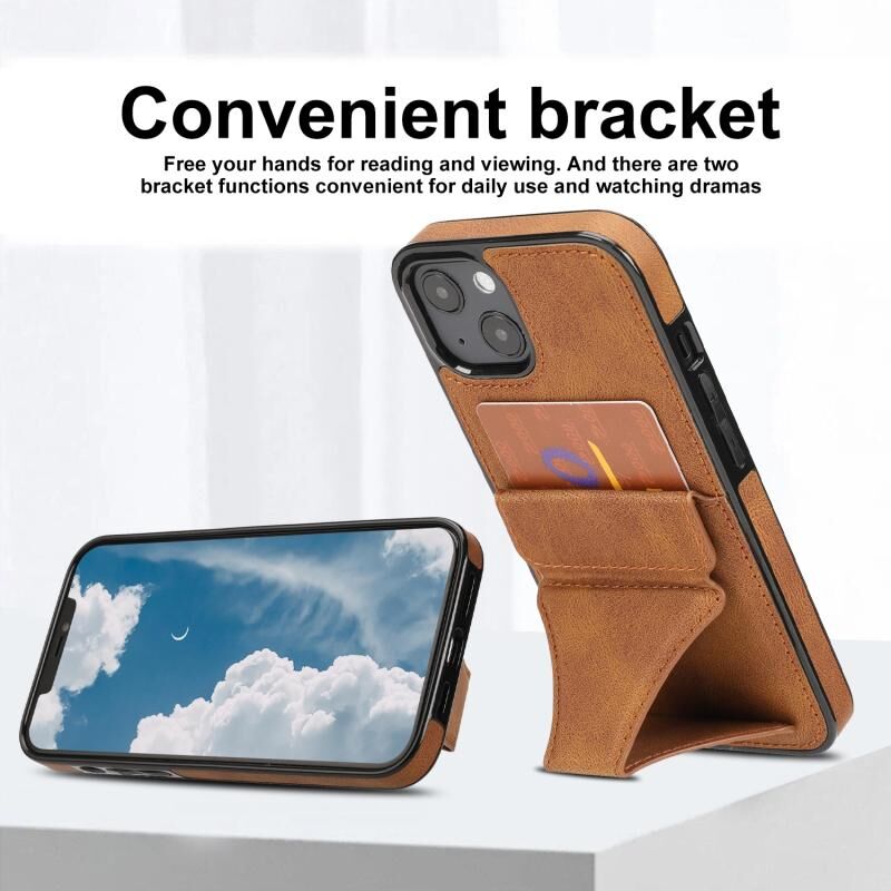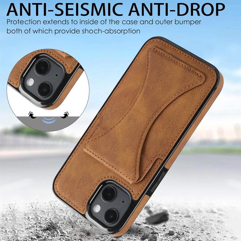 Θήκη προστασίας κινητού τηλεφώνου για iPhone 15 Plus / 14 Plus, εξαιρετικά λεπτή και αντικραδασμική, με βάση στήριξης (Καφέ)