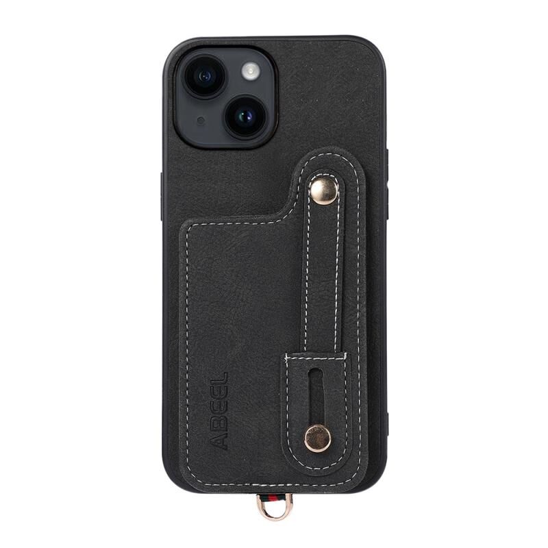 Θήκη τηλεφώνου για iPhone 15 Plus ABEEL με υφή δέρματος λυτσί, κάρτας από PU (Μωβ)
