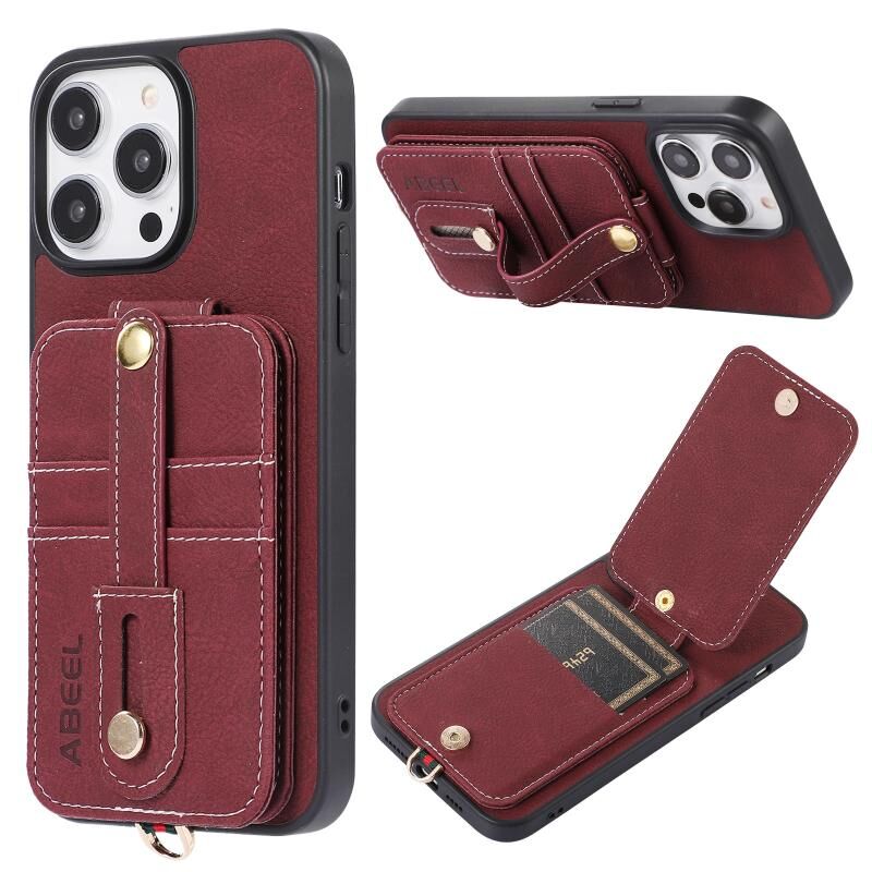 Θήκη τηλεφώνου για iPhone 15 Plus ABEEL με υφή δέρματος λυτσί, κάρτας από PU (Μωβ)