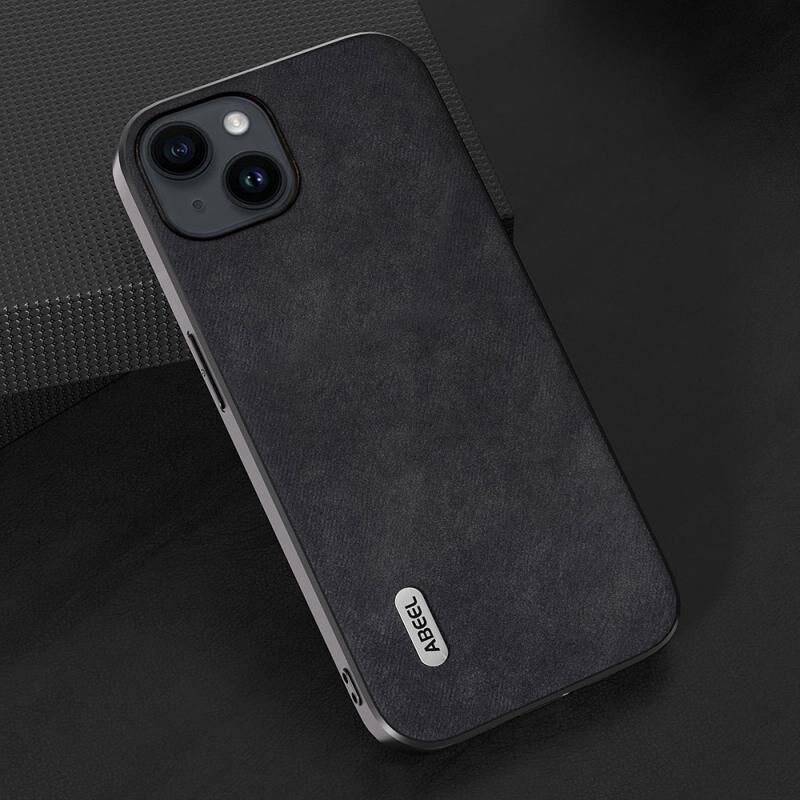 Θήκη τηλεφώνου ABEEL Μαρόκο Υφή PU για iPhone 15 Plus (Μαύρο)