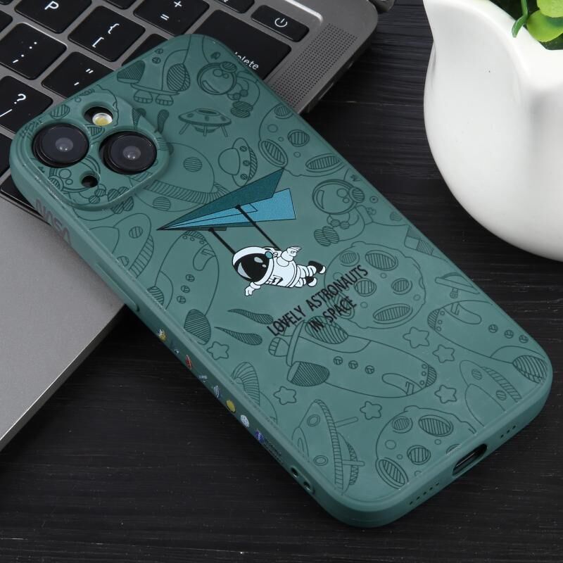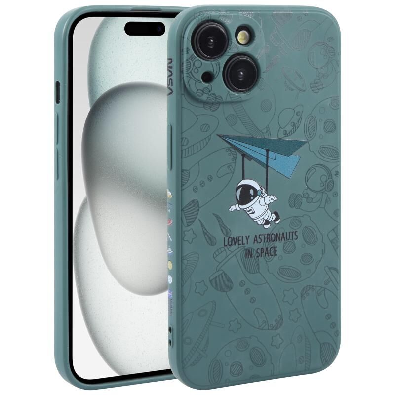 Θήκη τηλεφώνου για iPhone 15 Plus με σχέδιο αστροναύτη, σιλικόνης, ευθείας άκρης (Αστροναύτης Άρη - Μαύρο)