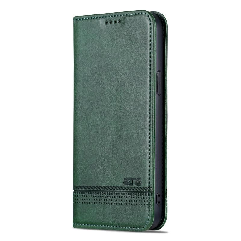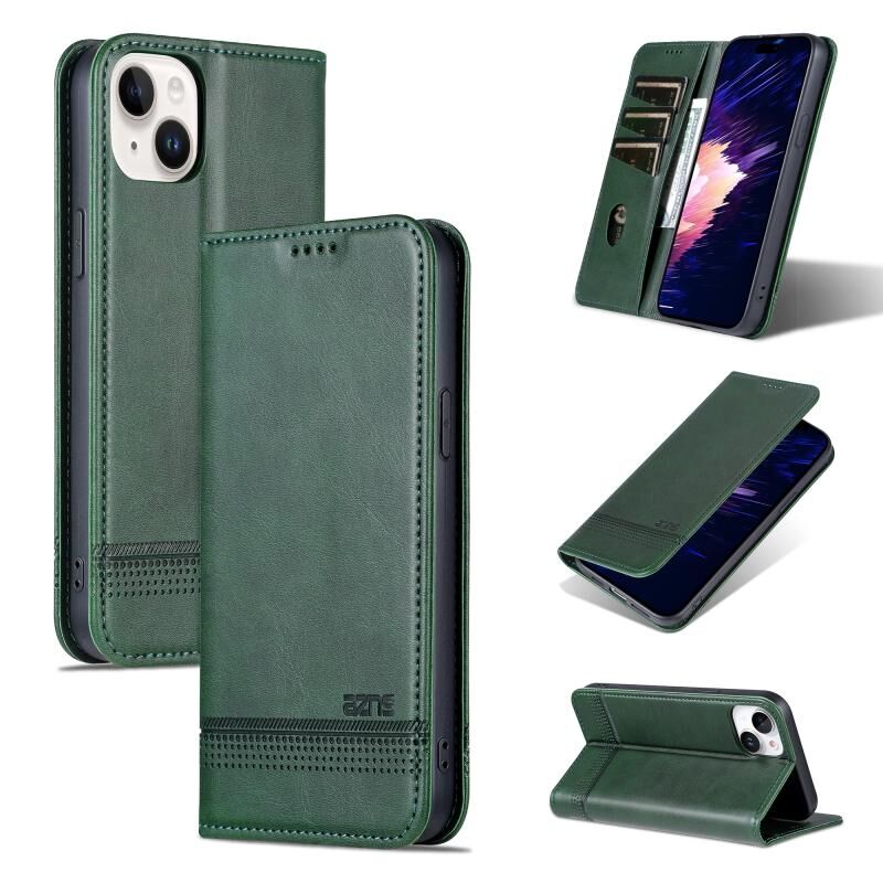 Θήκη τηλεφώνου από δέρμα μοσχαριού με μαγνητική υφή για iPhone 15 Plus (Ανοιχτό Καφέ) (AZNS)