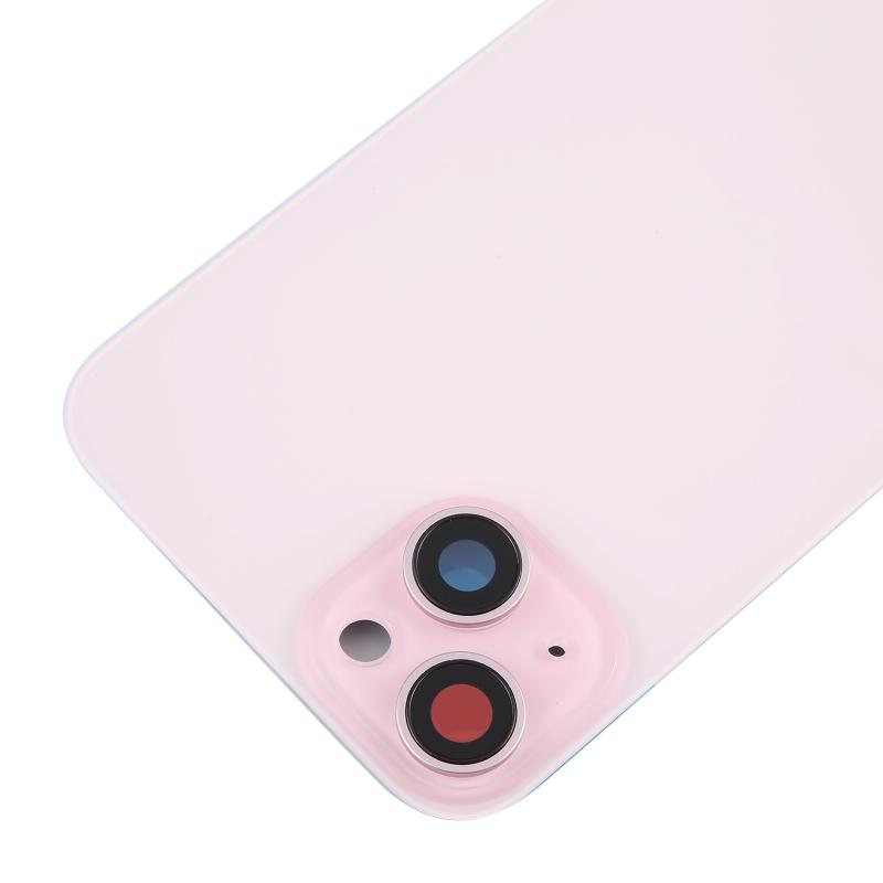 For iPhone 15 Plus Battery Back Cover with Camera Lens Cover + MagSafe Magnet(Pink)