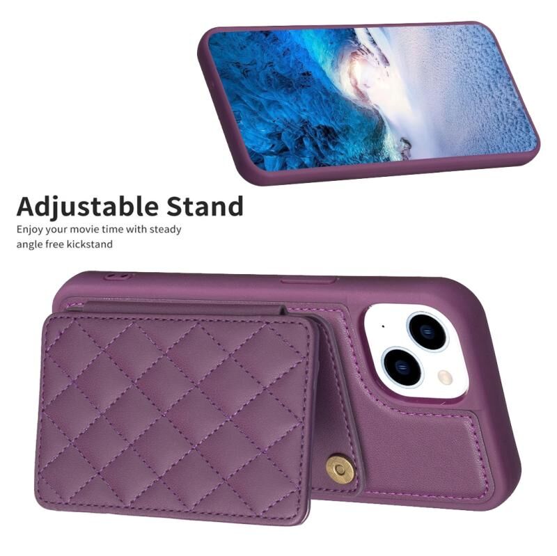 Θήκη τηλεφώνου για iPhone 15 Plus BF25 με κάρτες και σχέδιο καρό (Σκούρο μωβ)