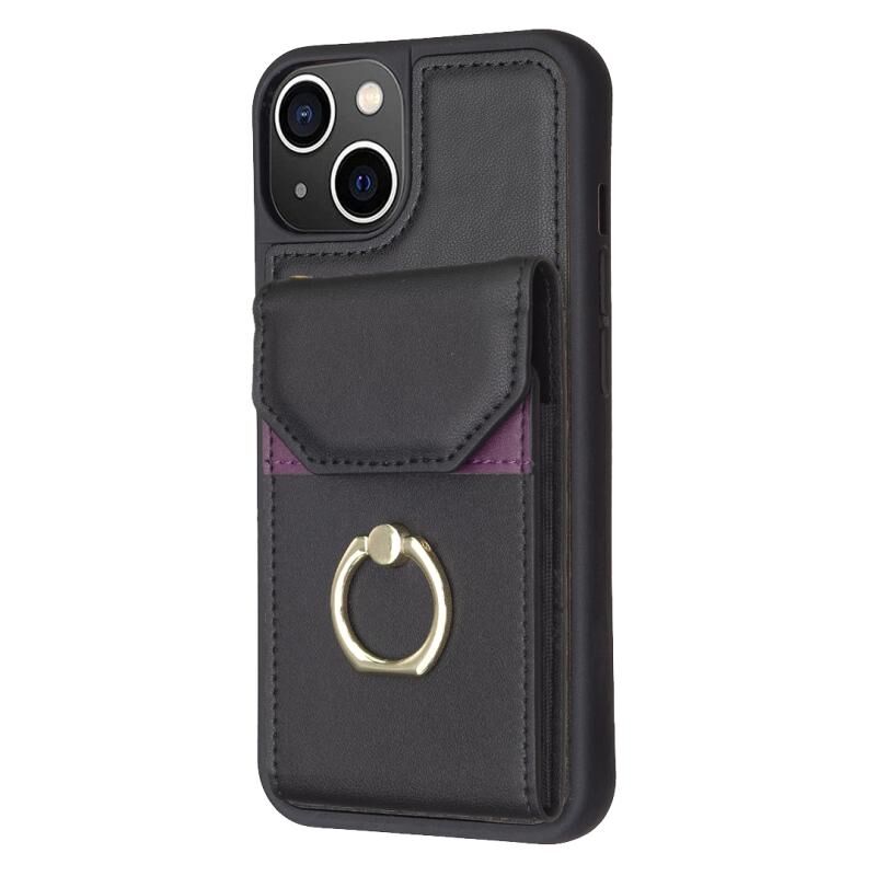 Θήκη τηλεφώνου για iPhone 15 Plus BF29 με κάρτες, δαχτυλίδι και λαβή (Μωβ Σκούρο)