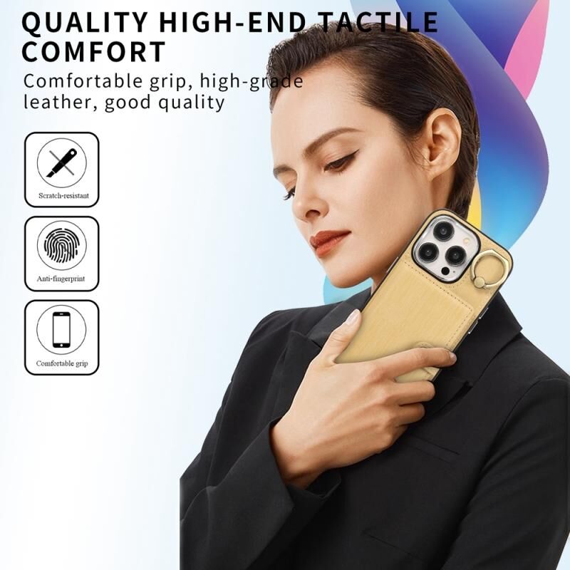 Θήκη τηλεφώνου για iPhone 15 Plus με υφή βουρτσισμένου μετάλλου, δακτύλιο και θήκη πορτοφολιού (Μαύρο)
